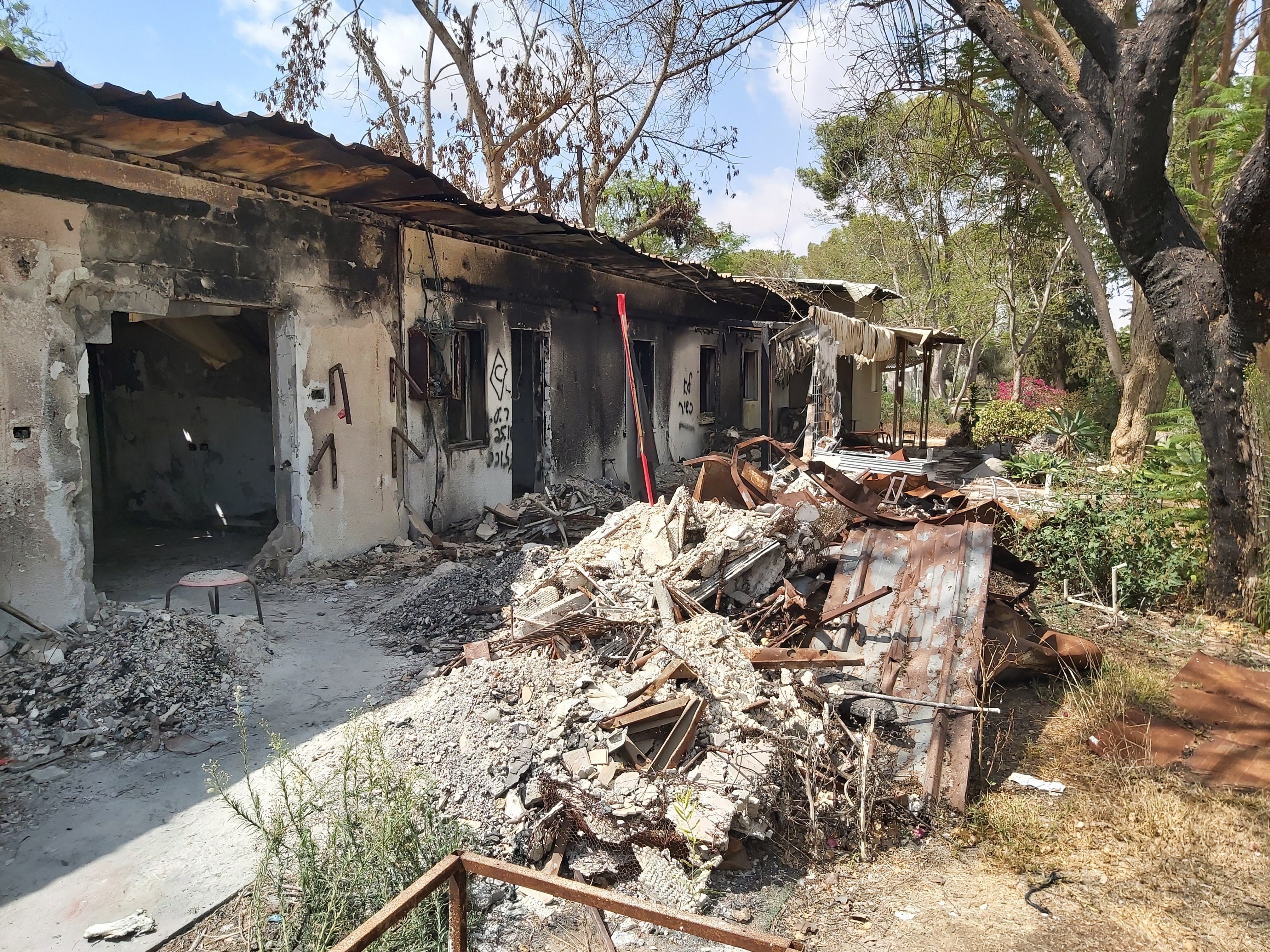From Mor Tzarfati, who led a small group of us around the kibbutz, I learned that only six of the 200 residences at Nir Oz were left undamaged by the onslaught, which was carried out with gunfire, hand grenades, arson, and more. The physical damage to the community will take some years to repair, but the psychological impact on those who survived that day now threatens to tear apart the collective, which is the most valuable component of a kibbutz.